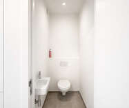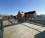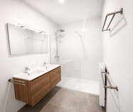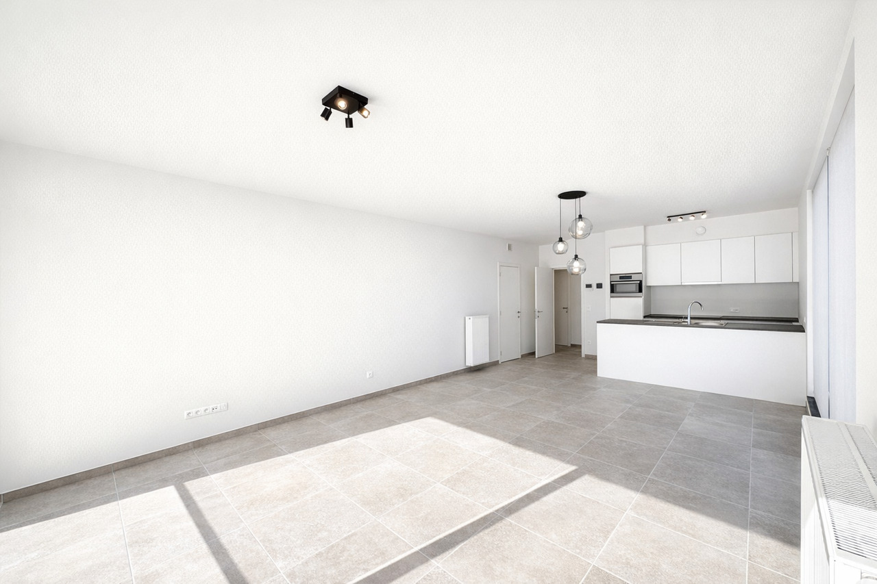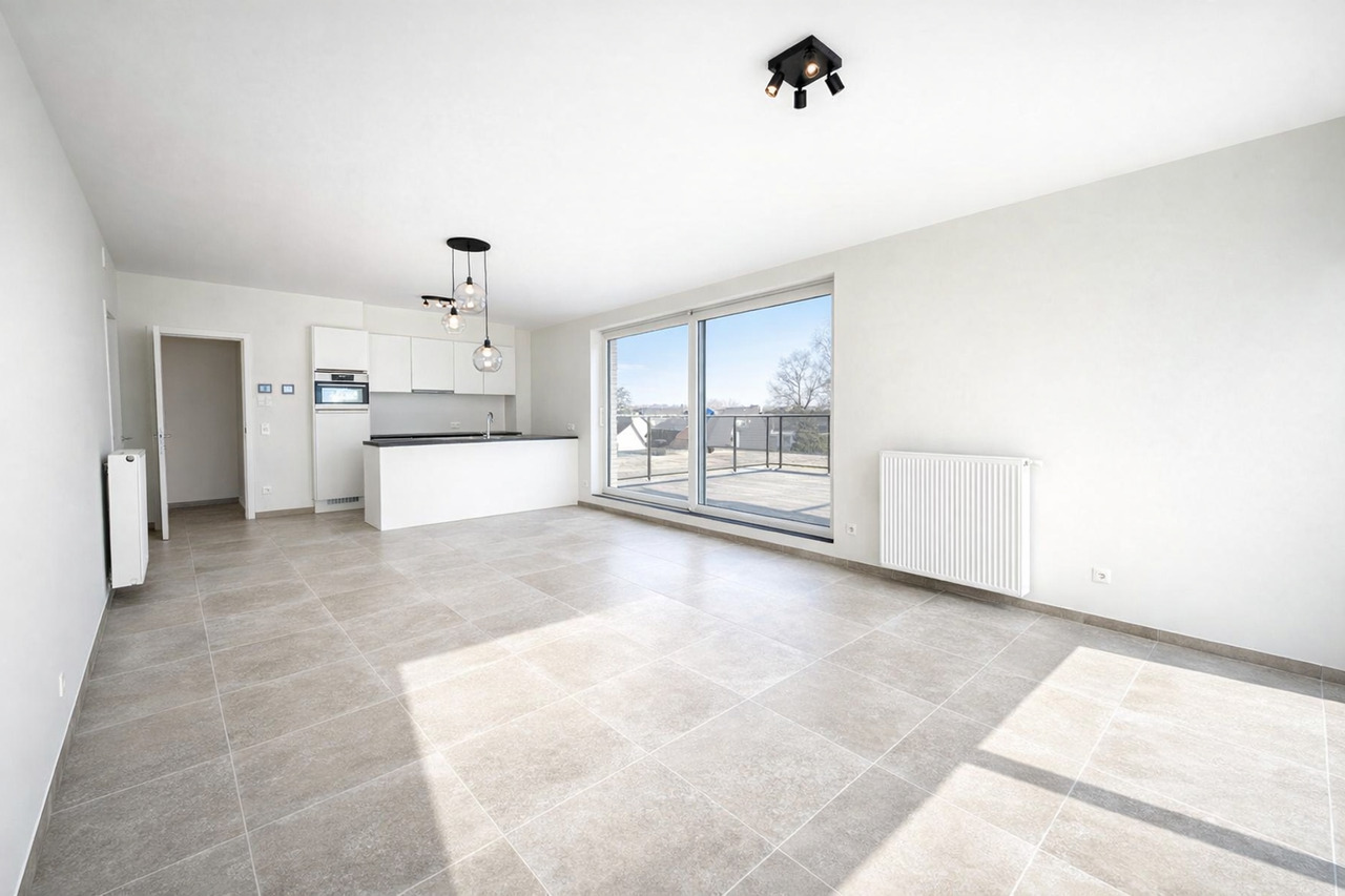 Bij het binnenkomen kom je in een centrale inkomhal die toegang geeft tot een apart gastentoilet, de leefruimte, de 2 slaapkamers en de badkamer. De ruime leefruimte met eetplaats vormt het hart van het appartement en sluit naadloos aan op de open keuken. Deze leefruimte biedt veel natuurlijke lichtinval en geeft rechtstreeks uit op 2 grote, zonnige terrassen — ideaal om te ontspannen of gezellig buiten te eten.
