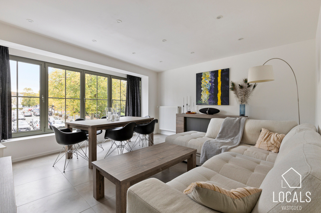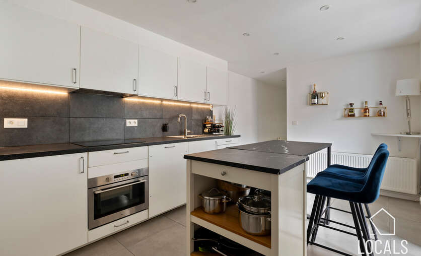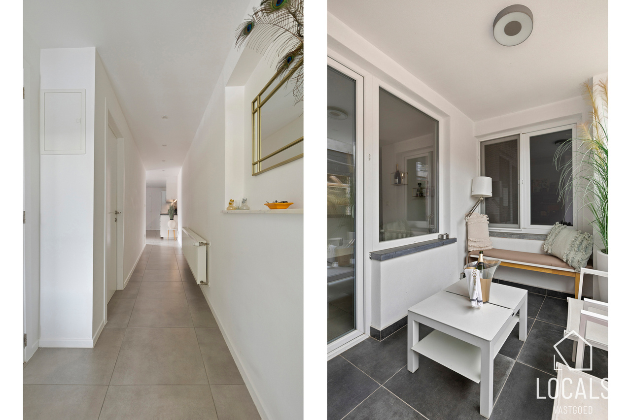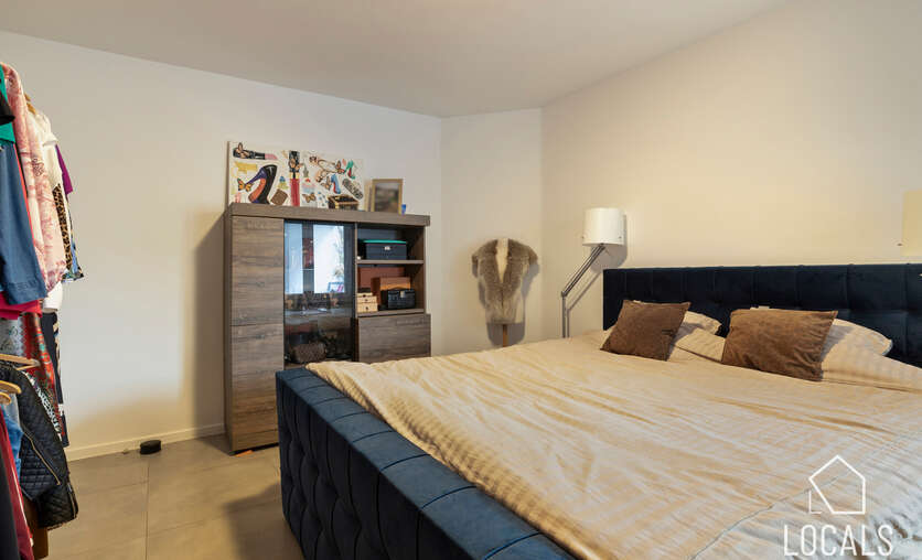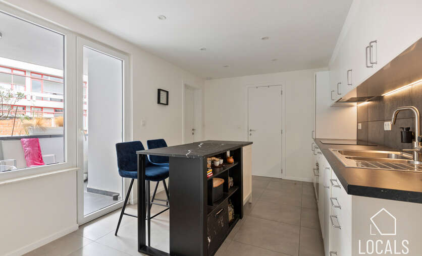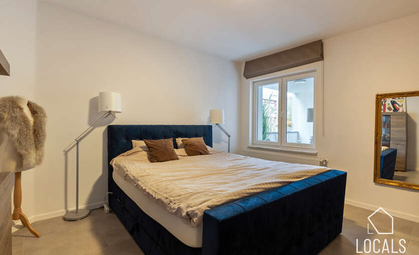 Het appartement zelf bevindt zich op de eerste verdieping en verwelkomt u met een gezellige leefruimte met eetplaats, waar licht en ruimte harmonieus samenkomen. De open keuken is uitgerust met alle courante toestellen en sluit naadloos aan op een praktische berging/wasplaats. De ruime master bedroom van maar liefst 16m² biedt volop comfort, terwijl de moderne badkamer is ingericht met een stijlvolle inloopdouche en kwaliteitsvolle afwerking. Op zonnige dagen vormt het aangename terras een heerlijke plek om te genieten van rust en privacy midden in de stad.