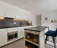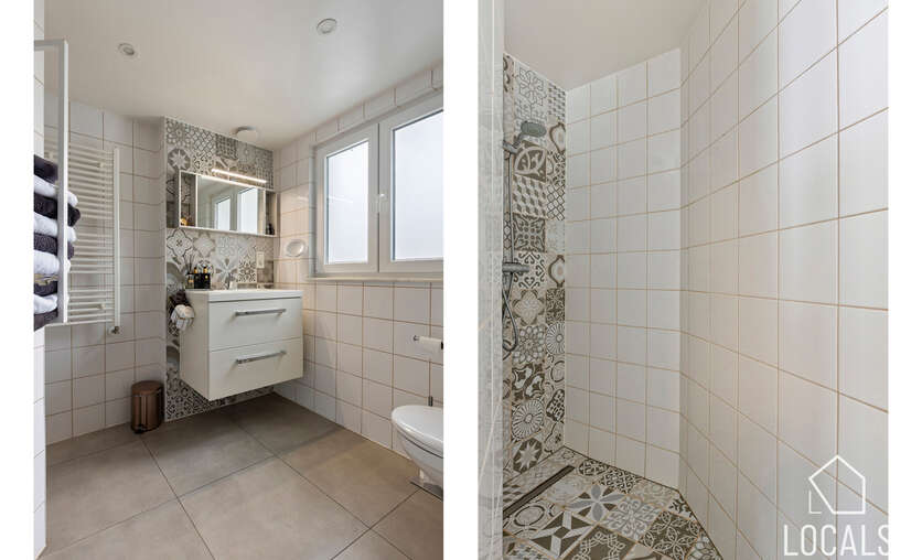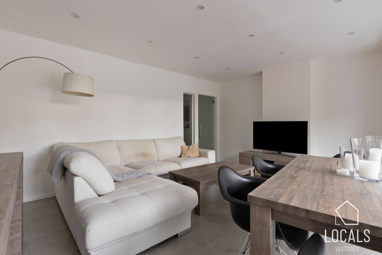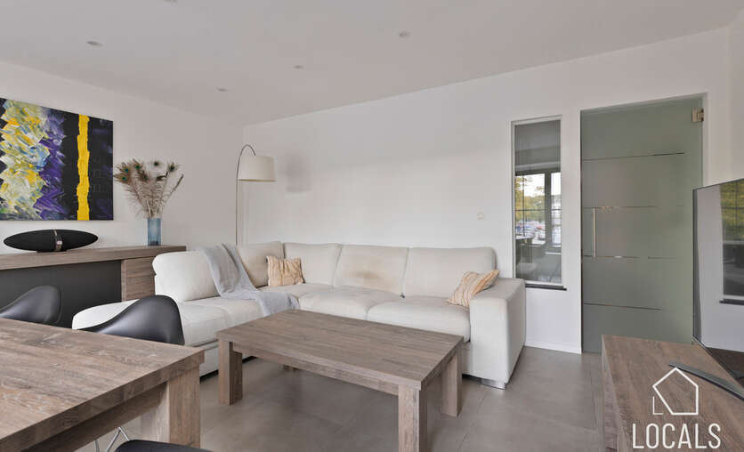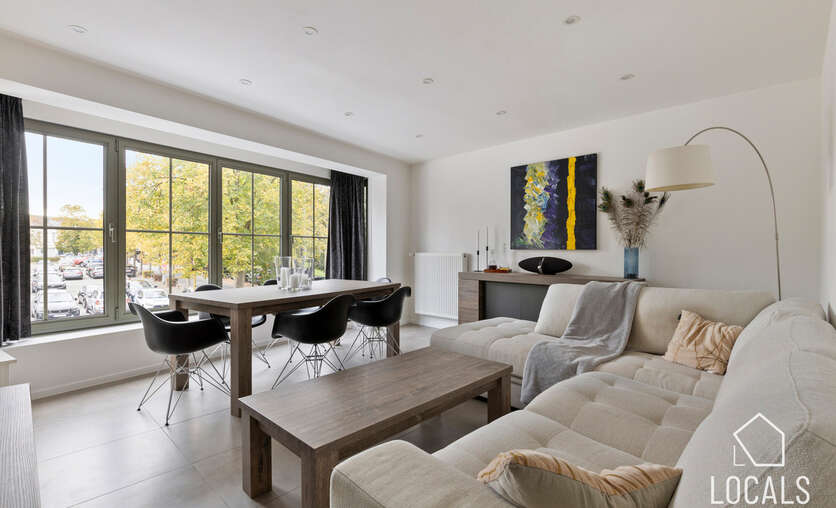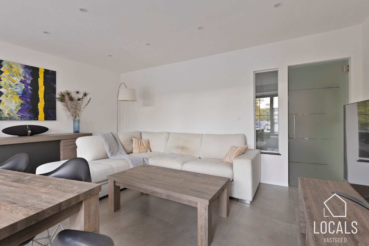 Het appartement zelf bevindt zich op de eerste verdieping en verwelkomt u met een gezellige leefruimte met eetplaats, waar licht en ruimte harmonieus samenkomen. De open keuken is uitgerust met alle courante toestellen en sluit naadloos aan op een praktische berging/wasplaats. De ruime master bedroom van maar liefst 16m² biedt volop comfort, terwijl de moderne badkamer is ingericht met een stijlvolle inloopdouche en kwaliteitsvolle afwerking. Op zonnige dagen vormt het aangename terras een heerlijke plek om te genieten van rust en privacy midden in de stad.