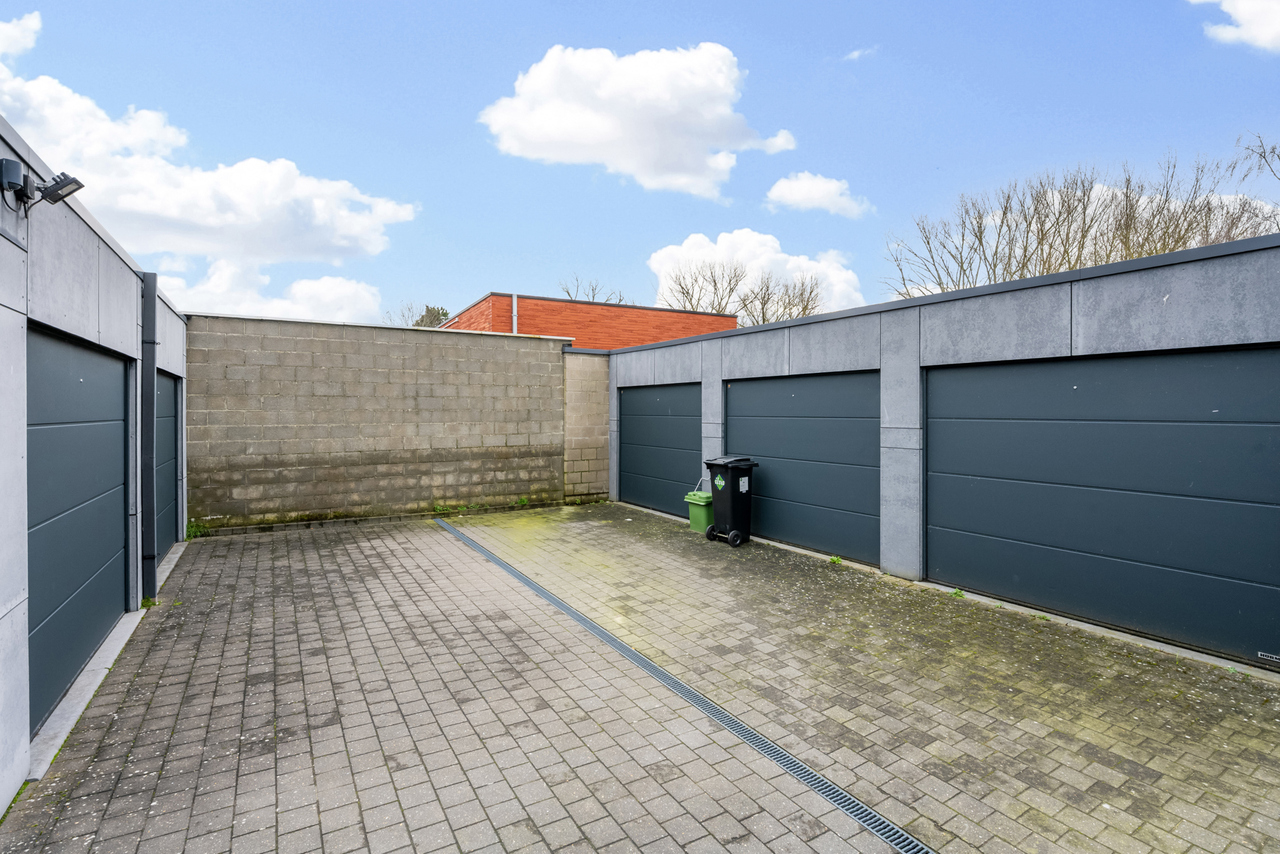 De garagebox is voorzien van een geautomatiseerde sectionaalpoort.