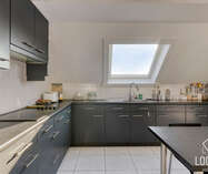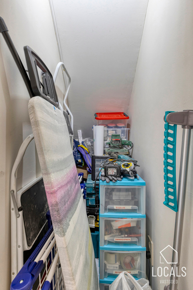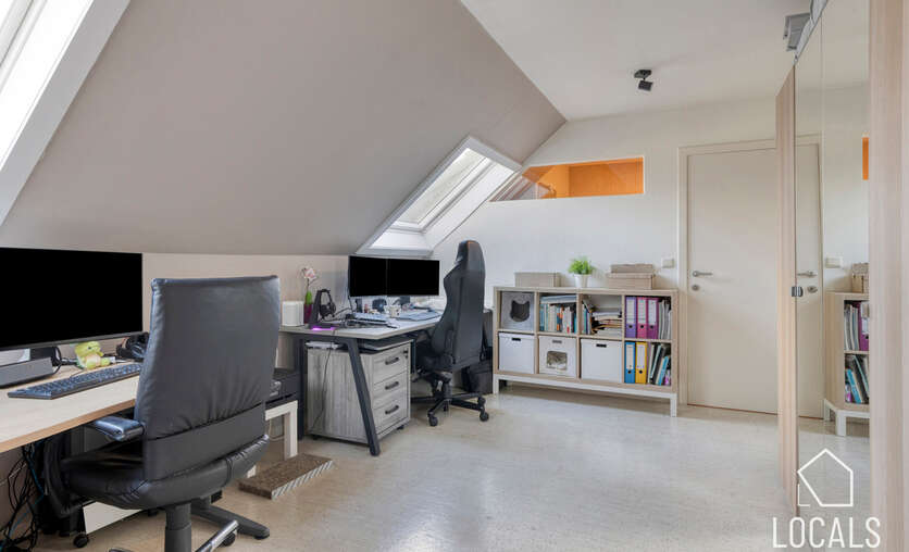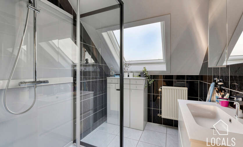 Bij binnenkomst wordt u verwelkomd in een ruime en lichtrijke leefruimte, die naadloos overgaat in een open keuken. Aanpalend bevindt zich een praktische berging met aansluiting voor een wasmachine en voldoende opslagruimte. Grote raampartijen zorgen voor een overvloed aan natuurlijk licht, wat de leefruimte een warme en uitnodigende sfeer geeft. De 1ste badkamer is uitgerust met een douche, daarnaast vindt u twee volwaardige slaapkamers en een apart gastentoilet. Deze slimme indeling maakt de duplex zowel functioneel als elegant.