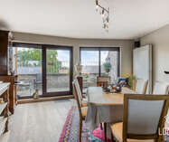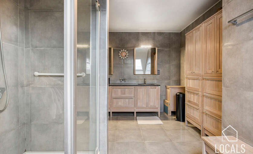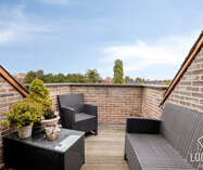 De duplex is afgewerkt met kwaliteitsvolle materialen, waaronder een massieve parketvloer. Bovendien beschikt het gebouw over een lift met persoonlijke toegangssleutel, die uitsluitend toegang geeft tot het verdiep van dit duplexappartement, een extra troef op vlak van privacy.