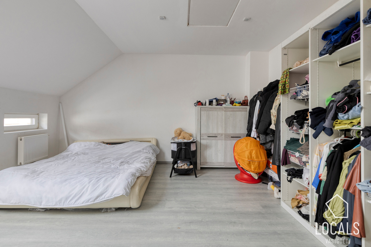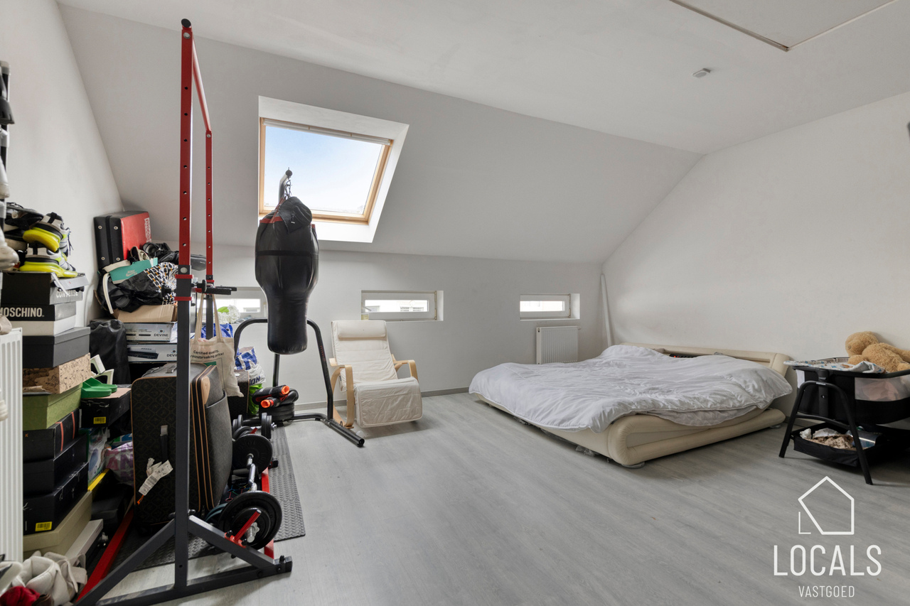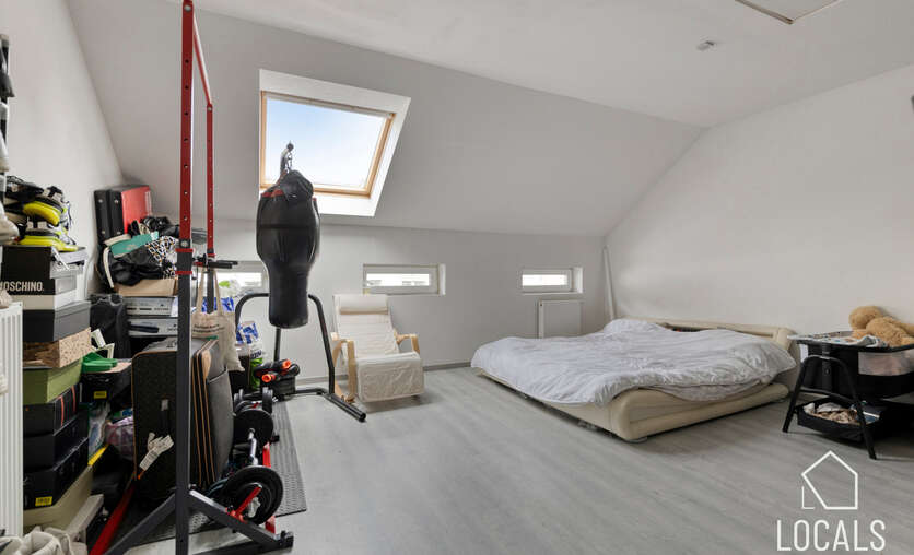 Het appartement heeft een bewoonbare oppervlakte van ca. 125m² en omvat een ruime leefruimte van 50m² met aansluitend de keuken en wasplaats. Verder is er een klein terras aanwezig. Op het tussenverdiep bevindt zich de badkamer met inloopdouche, lavabo en toilet. De tweede verdieping telt twee zeer ruime slaapkamers en biedt toegang tot de zolder, ideaal als stockage. Het appartement is momenteel verhuurd aan €780/maand.