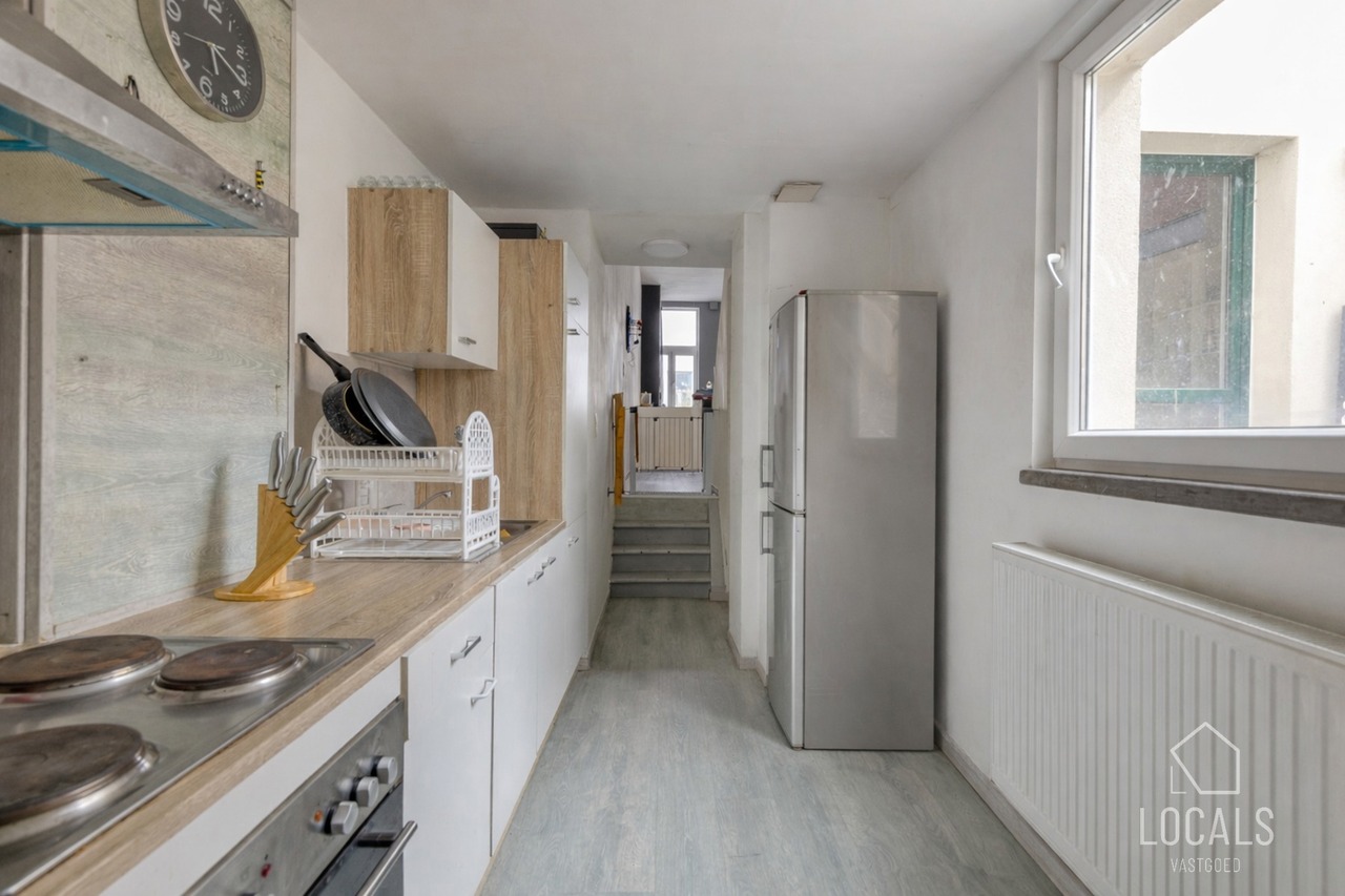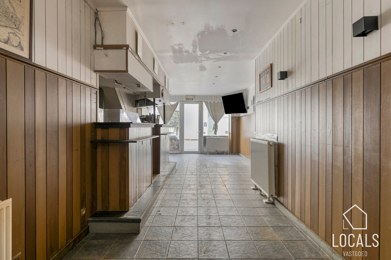Het handelsgelijkvloers, momenteel ingericht als café, kan mits een kleine opfrissing eenvoudig heringericht worden. Bij het binnenkomen vindt u de caféruimte met open bar, aparte mannen- en vrouwentoiletten, toegang tot de kelder en achteraan een extra polyvalente ruimte. Elektriciteit is conform, het pand is energiezuinig en voorzien van centrale verwarming op aardgas. Kortom, een interessante opbrengsteigendom op een strategische locatie. Interesse? Maak snel uw afspraak via 054 23 53 83 of info@localsvastgoed.be.