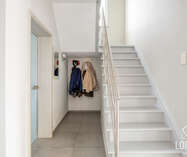 Op de eerste verdieping bevinden zich drie slaapkamers en via een uitschuifbare trap bereikt u de grote zolder, ideaal als extra opslagruimte.