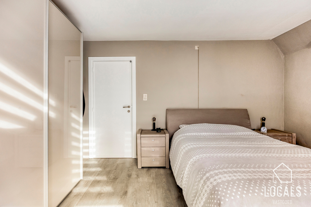 Op het gelijkvloers vindt u een apart gastentoilet en een inkomhal met vooraan de eetruimte die ook kan ingericht worden als bureauruimte of zelfs extra slaapkamer. De leefruimte sluit naadloos aan op de volledig uitgeruste keuken, voorzien van inbouw toestellen. Verder is er een veranda, een badkamer, een gezellig terras en een diepe tuin waar u in alle rust kunt genieten. De woning is volledig onderkelderd.