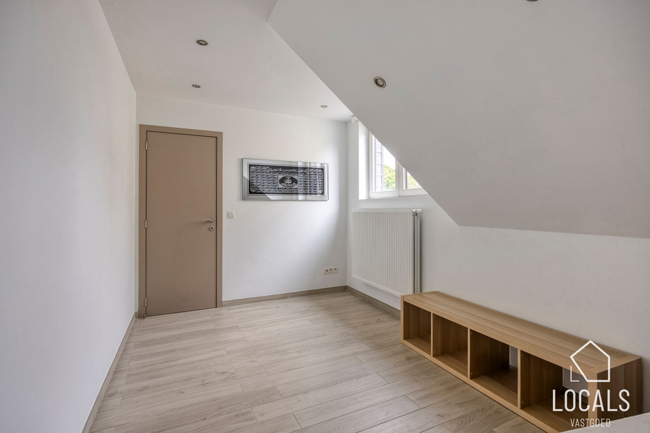Op de bovenverdieping wachten drie volwaardige slaapkamers en een moderne badkamer, uitgerust met een inloopdouche/lavabomeubel en een tweede toilet. De zolder biedt nog extra stockage en maakt het plaatje helemaal compleet. Deze woning combineert een doordachte indeling met een hoogwaardige afwerking, en vormt zo de ideale thuis voor wie op zoek is naar een instapklare woning op een centrale locatie.