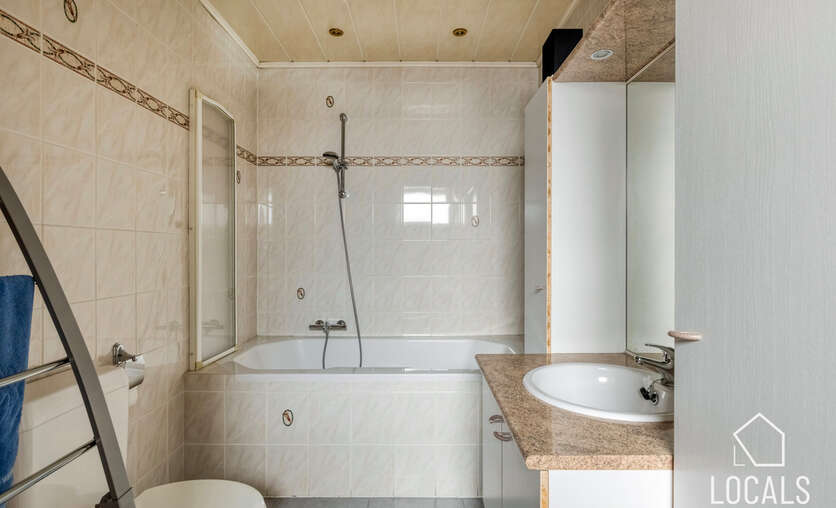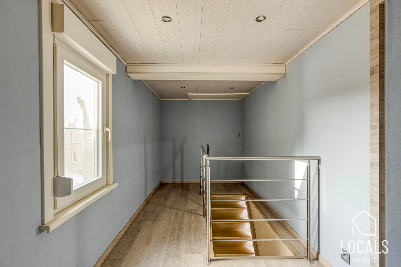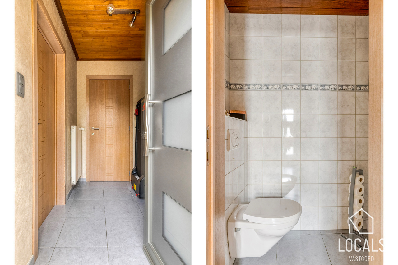 Deze instapklare woning heeft een inkomhal met toilet, woonkamer met open keuken, nachthal, badkamer (met toilet, ligbad/douche en wastafel) en een ruime garage. De verdieping heeft een nachthal en 3 ruime slaapkamers. De tuin is eveneens langs achteraan te bereiken en biedt diverse autostaanplaatsen. Dubbele beglazing (deels zonnewerend), rolluiken, ontkalker, centrale verwarming, warmtepomp/airco (L/L), dakisolatie, 12 zonnepanelen (2023), perfecte oriëntatie, geen renovatieplicht – epc 286 kWh/m² - label C,.. zijn enkele van zijn troeven. P-score: A – G-score: A. Strategisch gelegen, dit met makkelijke verbinding naar station, oprit E40 en in de nabijheid van winkels & scholen. Voor meer informatie en/of bezichtiging: 054 23 53 83 of info@localsvastgoed.be