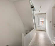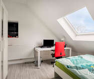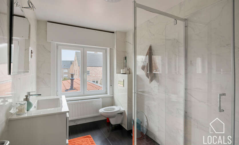 Op de eerste verdieping zijn er twee ruime slaapkamers en een tweede badkamer met douche en toilet. De tweede verdieping telt nog eens twee volwaardige slaapkamers en een extra badkamer — ideaal voor grotere gezinnen of wie nood heeft aan extra ruimte voor bureau of hobby.