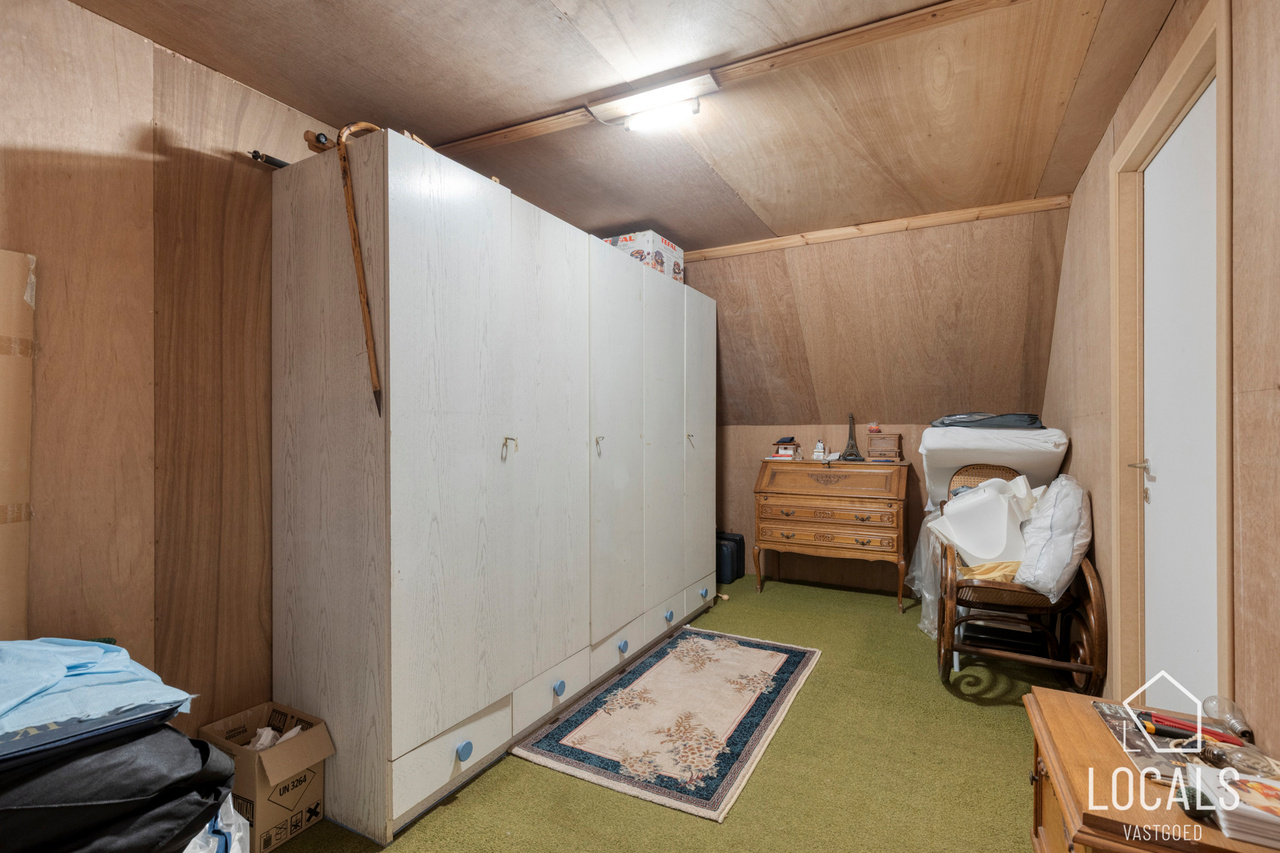Op de eerste verdieping bevinden zich twee ruime slaapkamers (13 m² en 16 m²). Dankzij de vaste trap naar de zolder is er bovendien de mogelijkheid om twee extra kamers te creëren, perfect voor wie extra ruimte zoekt.
