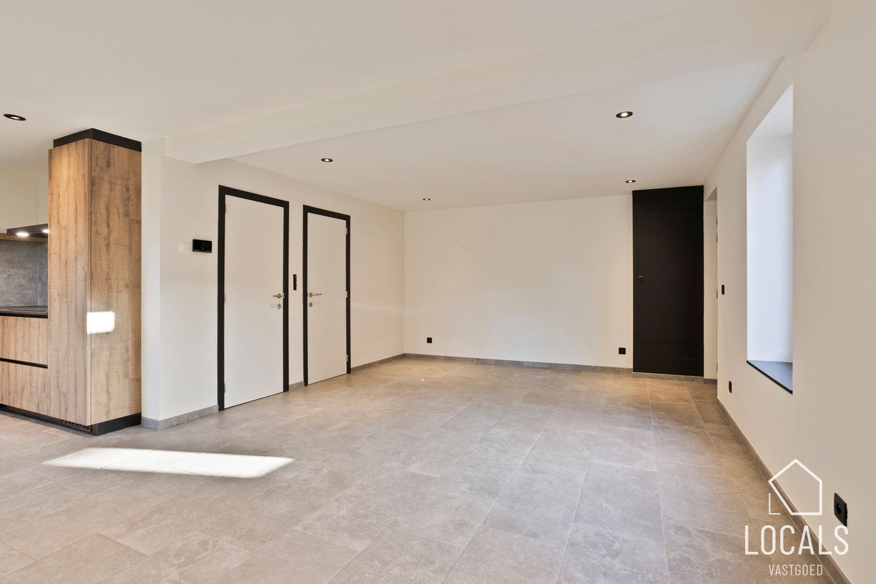Ontdek deze volledig gerenoveerde halfopen bebouwing gelegen in een rustige omgeving in Denderhoutem. In 2023 onderging de woning een totaalrenovatie. Het resultaat is een instapklare thuis waar stijl en gezelligheid elkaar perfect aanvullen. Bij het binnenkomen word je verwelkomd in de warme leefruimte met aansluitend de volledig uitgeruste keuken, ideaal ingericht voor wie graag kookt en geniet. Op het gelijkvloers bevinden zich verder de doorgang naar de kelder — een praktische extra opslagruimte — een eerste gastentoilet en de handige wasplaats.