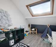 De eerste verdieping beschikt over twee ruime slaapkamers die voorzien zijn van airconditioning, een dressing en een badkamer met tweede toilet/ligbad en douche. Op de tweede verdieping bevinden zich nog drie bijkomende slaapkamers, waardoor de woning in totaal vijf slaapkamers telt en dus perfect geschikt is voor grotere gezinnen.