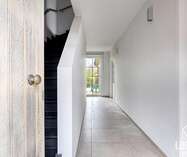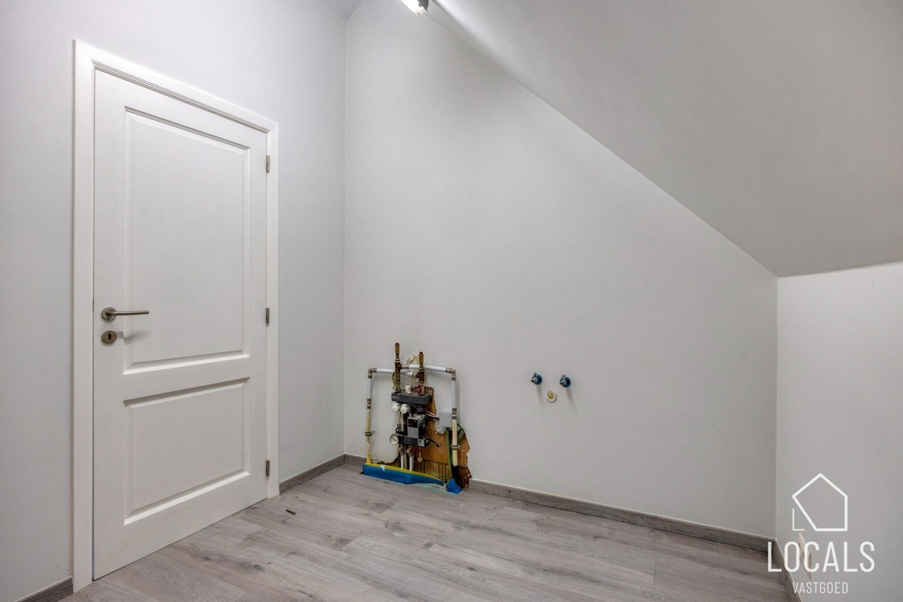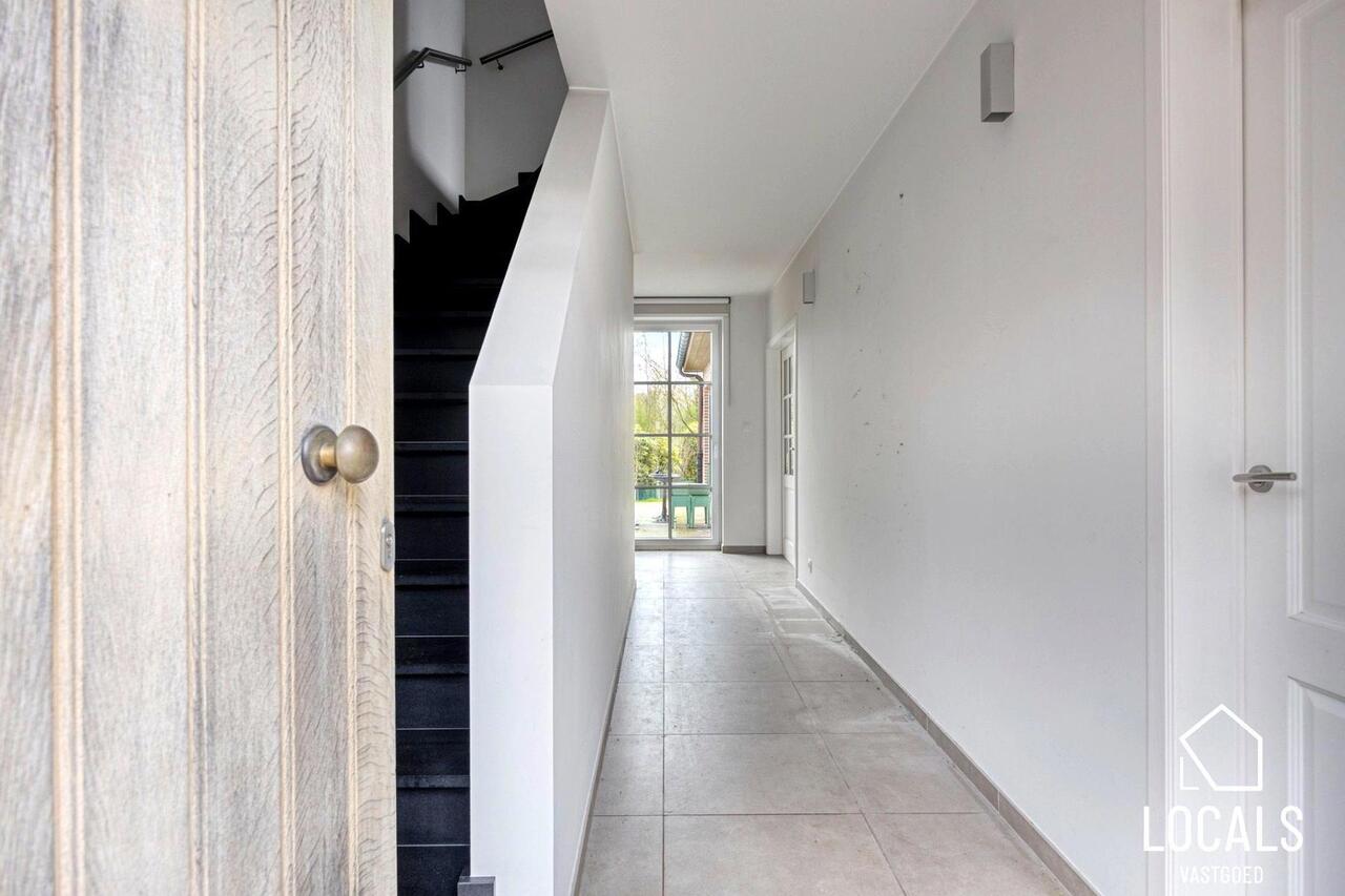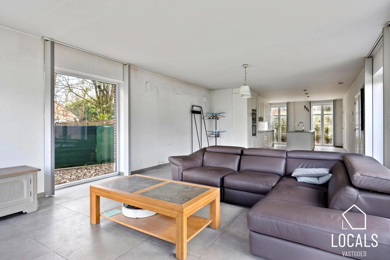 De woning omvat een inkomhal met gastentoilet, lichtrijke woonkamer met ruime open keuken, wasplaats en bureau/slaapkamer op het gelijkvloers. Volledig onderkelderd met veel opslagruimte.