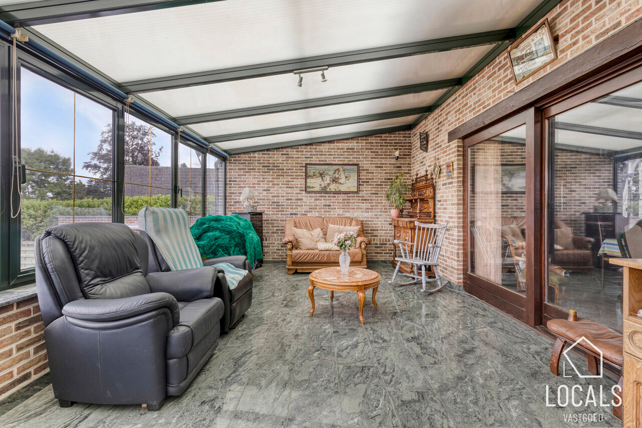 Bij het betreden van de woning wordt u verwelkomd in de ruime inkomhal met prachtige trappenhal, een open leefruimte die naadloos overgaat in een lichtrijke en ruime leefveranda – een ideale plek om tot rust te komen met zicht op de gezellige binnenkoer. De praktisch geïnstalleerde keuken sluit mooi aan op een aparte wasplaats, wat het dagelijkse comfort ten goede komt.
