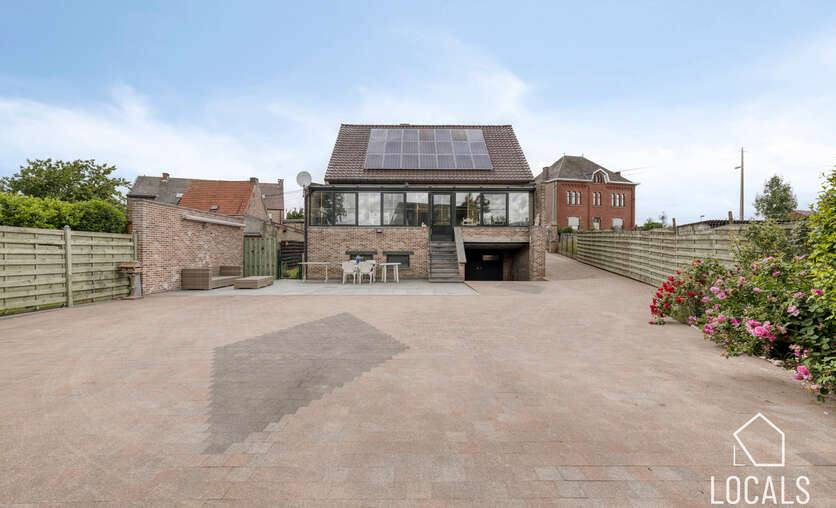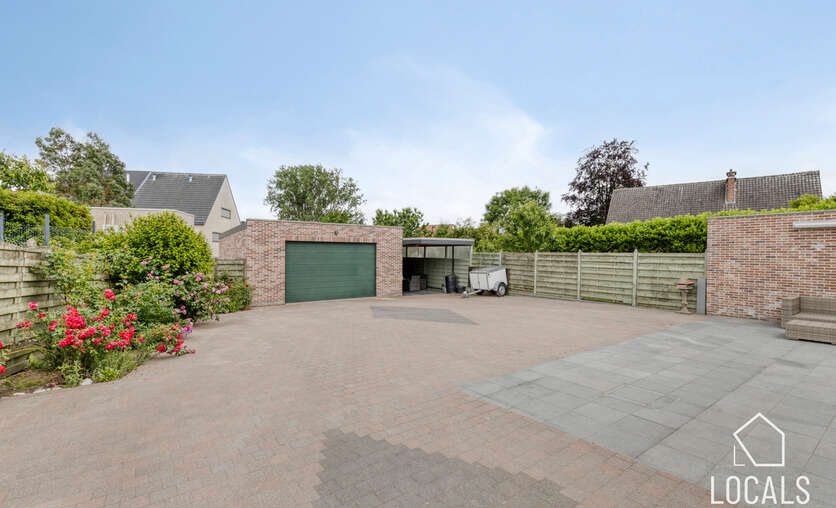 Buiten treft u een ruime en uitnodigende binnenkoer aan die uitnodigt tot gezellige momenten met familie of vrienden. Achteraan bevindt zich een functioneel bijgebouw/garage, met daarachter nog een extra stukje tuin voor wie graag tuiniert of gewoon van de rust wil genieten.