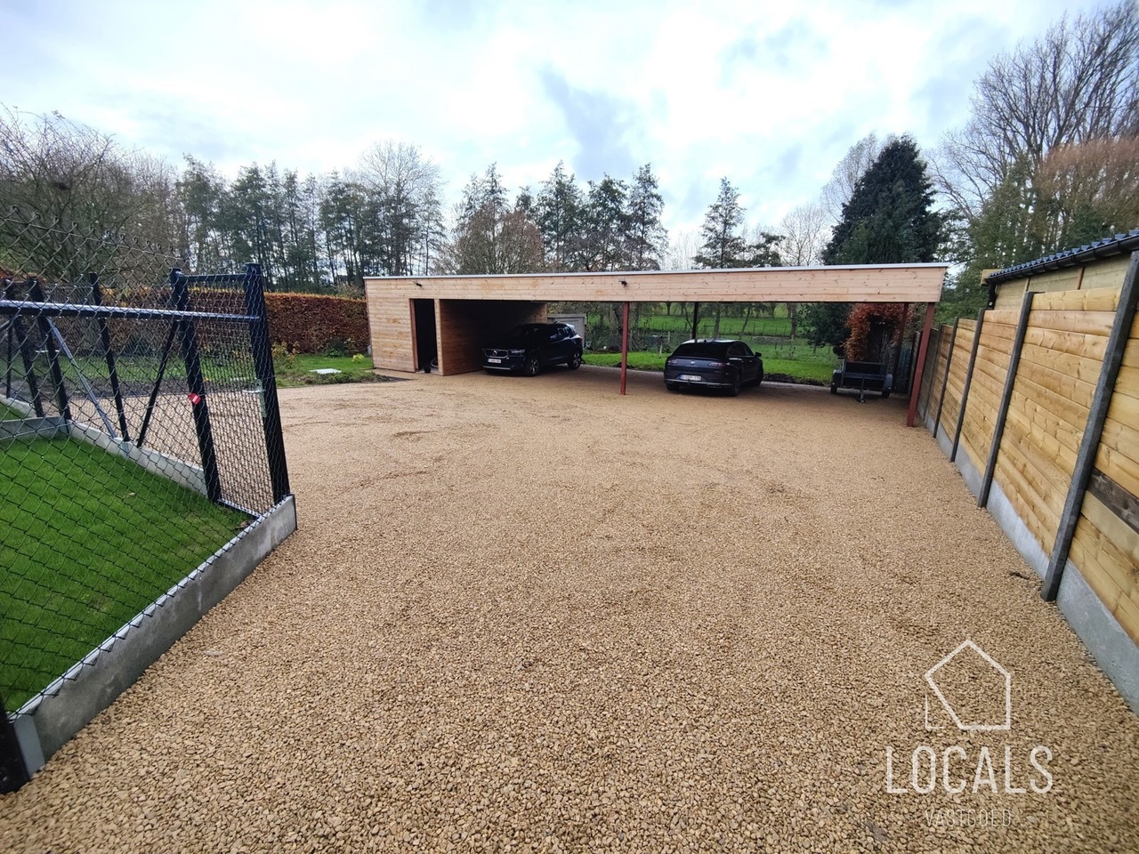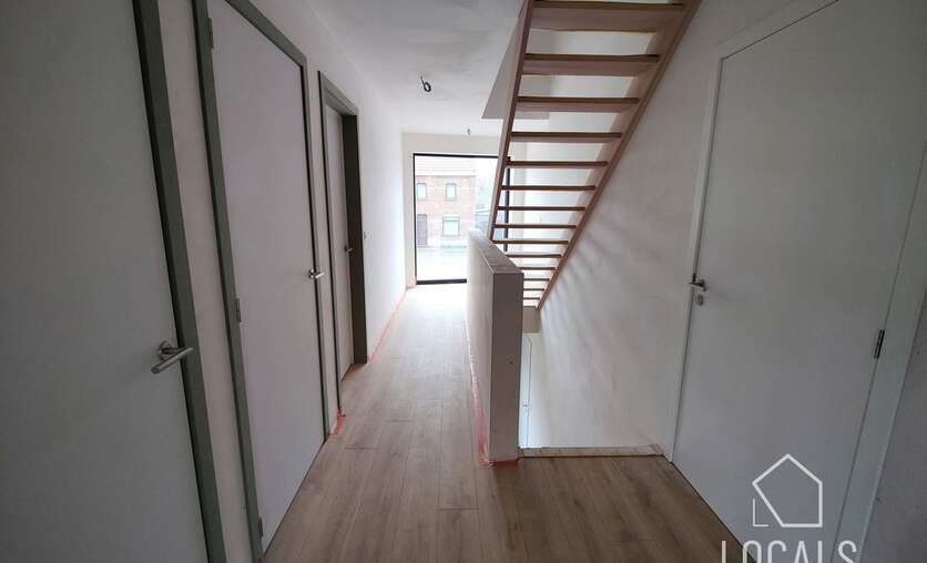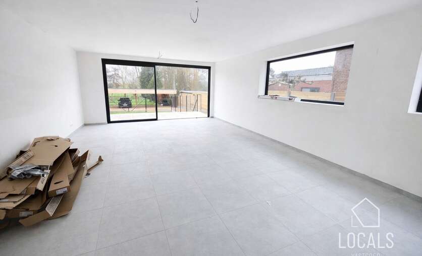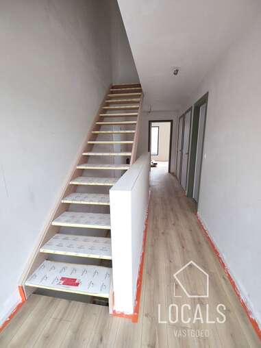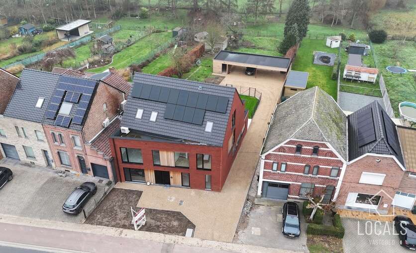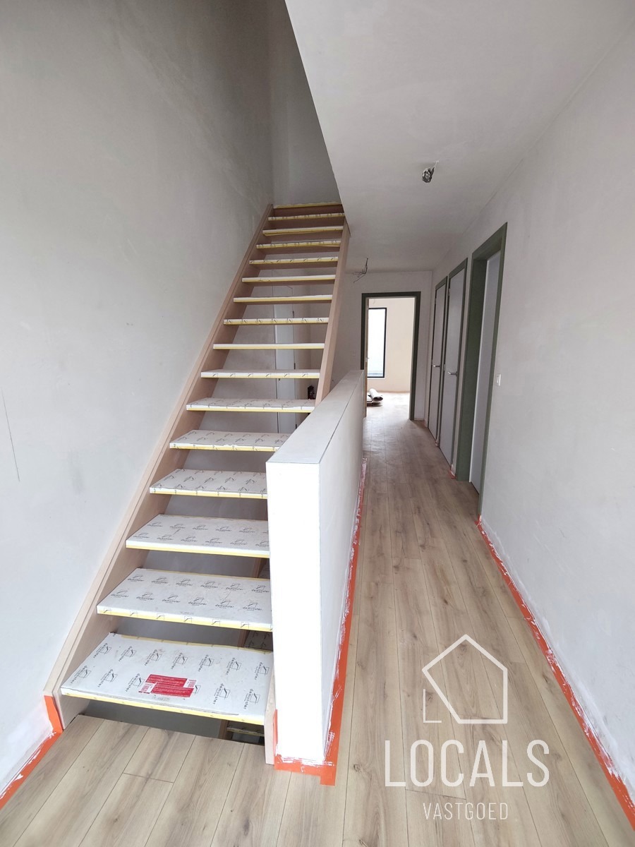 Deze triplex-woning is 190m² en is landelijk en strategisch gelegen, dit omgeven van groen en toch vlakbij het station, bushalte en makkelijke verbindingswegen. Bij het binnenkomen is er een traphal met gastentoilet, een ruime lichtrijke woonkamer met grote raampartijen en zicht op het terras en een ruime private tuin, open keuken met bijhorende berging. Op de verdieping bevindt zich een nachthal, apart toilet, badkamer met inloopdouche, 2 slaapkamers en een dressing. De zolder werd ingericht met 2 extra kamers & een 2e badkamer. U kan volgens het voorziene budget de keuken kiezen naar eigen smaak. Er is vloerverwarming op basis van lucht/waterwarmtepomp, gemeenschappelijke regenwaterput, ventilatiesysteem C+, zonnepanelen, aluminium met hoogrendementsbeglazing, .. kortom, een volledig instapklaar en kwalitatieve woonst zal worden afgeleverd. Verplicht dubbele carport aan te kopen. Er is mogelijkheid om achtergelegen grond bij aan te kopen. Gelegen in een kleinschalig nieuwbouwproject van 3 entiteiten (waarvan 66% verkocht). Prijzen excl. nutsvoorzieningen, BTW, verkooprechten en ereloon notaris. Voor meer informatie, plannen en lastenboek: 054 23 53 83 of info@localsvastgoed.be