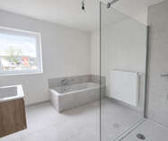 Op de verdieping bevinden zich drie ruime slaapkamers, ideaal voor gezinnen, thuiswerkers of wie graag een hobbykamer voorziet. De badkamer is logisch ingedeeld en biedt alle hedendaagse voorzieningen, terwijl een afzonderlijk toilet extra comfort garandeert. De nachthal verbindt alle ruimtes op een rustige en overzichtelijke manier.