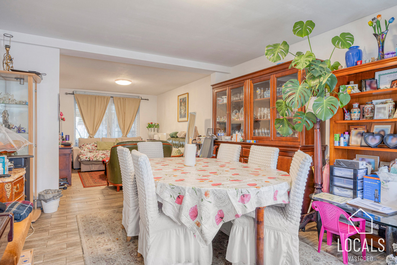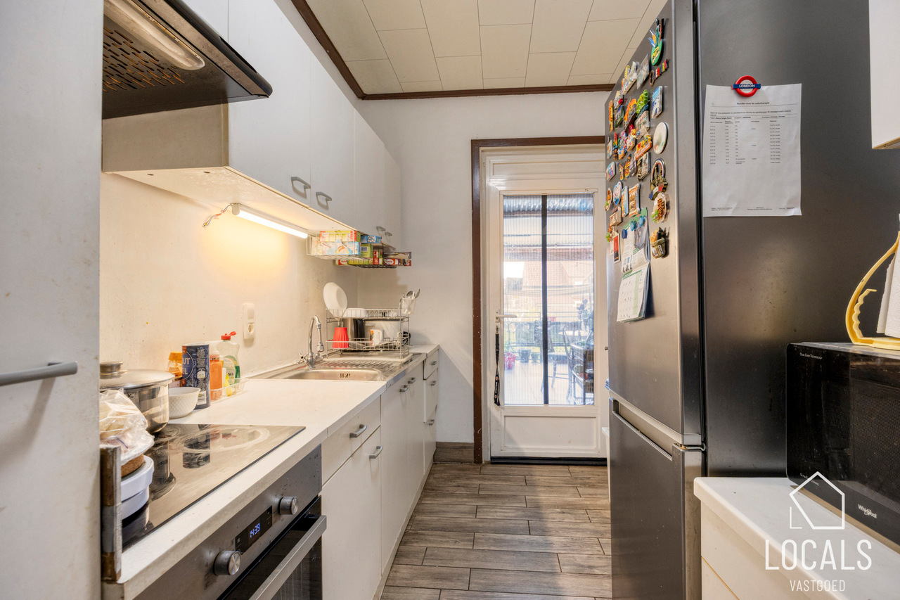 Te koop in Appelterre-Eichem, nabij het dorp en op 5 min. rijden van het centrum van Ninove bevindt zich deze gesloten bebouwing met 3 slaapkamers. Inkomhal met apart gastentoilet, living, ingerichte keuken, ruim terras en grote tuin. Er is een kelder aanwezig. De bovenverdieping omvat een nachthal met 3 slaapkamers en een badkamer. Centrale verwarming op aardgas.