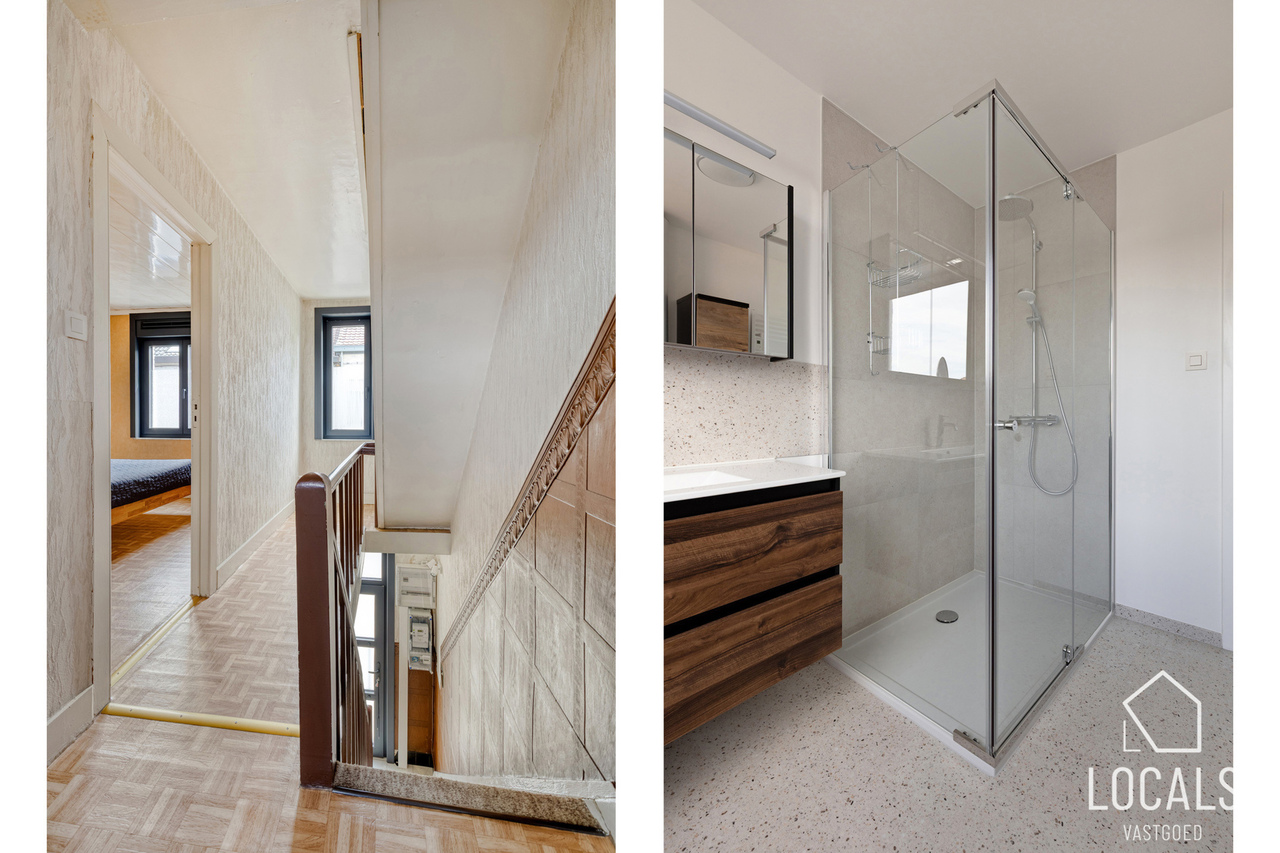 Op de eerste verdieping bevinden zich twee slaapkamers, evenals de vernieuwde badkamer die werd uitgerust met een tweede toilet, lavabo en inloopdouche. De zolder van ongeveer 30 m² is bereikbaar via een vaste trap en biedt, mits verdere afwerking, de mogelijkheid om ingericht te worden als een volwaardige master bedroom. De elektrische installatie is ook conform! Deze woning in Ninove biedt tal van mogelijkheden voor wie op zoek is naar een deels gerenoveerde woning met karakter, uitbreidingspotentieel en een gunstige ligging nabij alle voorzieningen. Bel 054 23 53 83 of mail naar info@localsvastgoed.be en kom deze unieke kans zelf ontdekken!