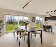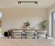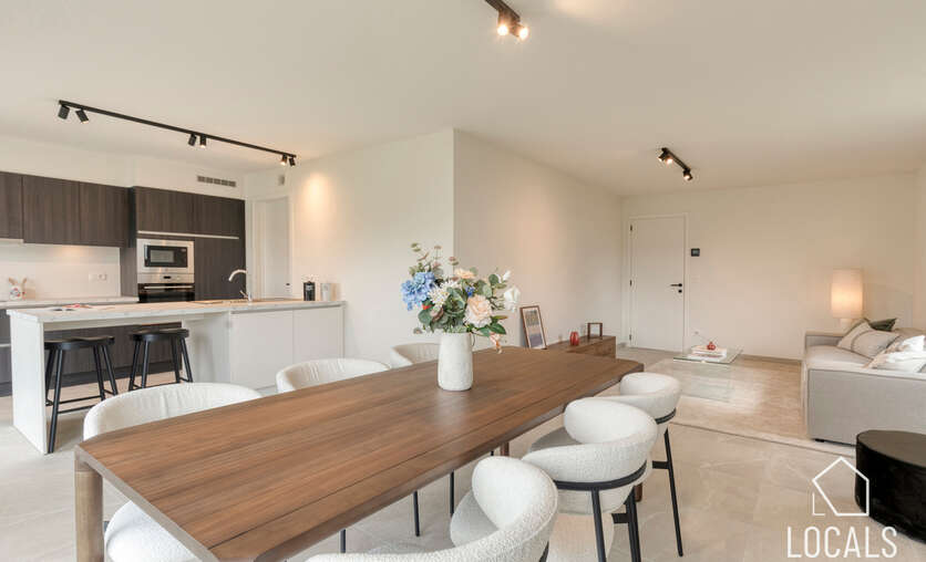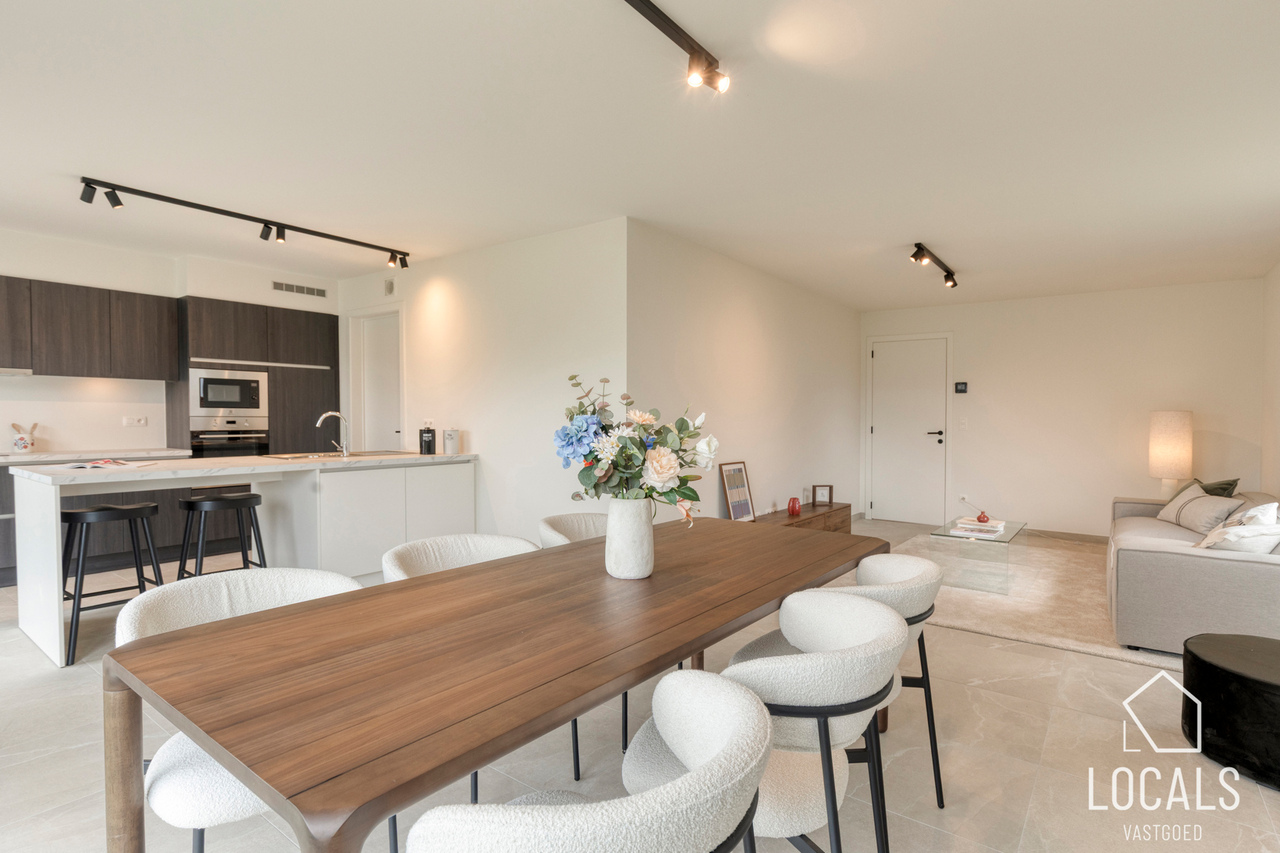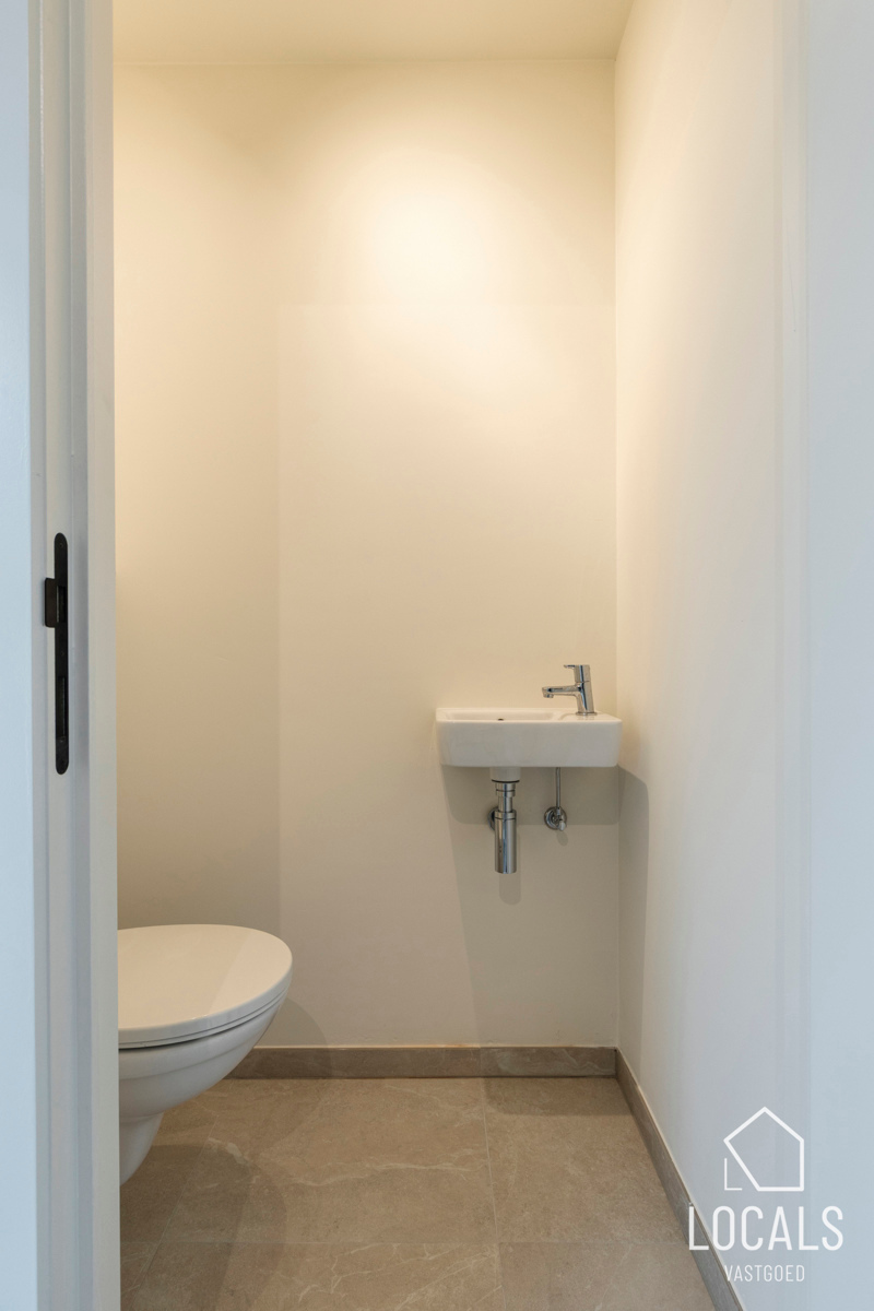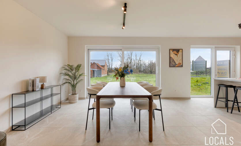 Het gelijkvloers is ontworpen als een open, lichte leefruimte waar functionaliteit en gezelligheid elkaar versterken. De keuken sluit mooi aan op de eethoek, waardoor koken en tafelen een vanzelfsprekende flow krijgen. De zithoek kijkt uit op de tuin en vormt een warme plek om te ontspannen. De inkomhal, het gastentoilet en de inpandige garage zorgen voor extra comfort en praktische meerwaarde in het dagelijkse leven.