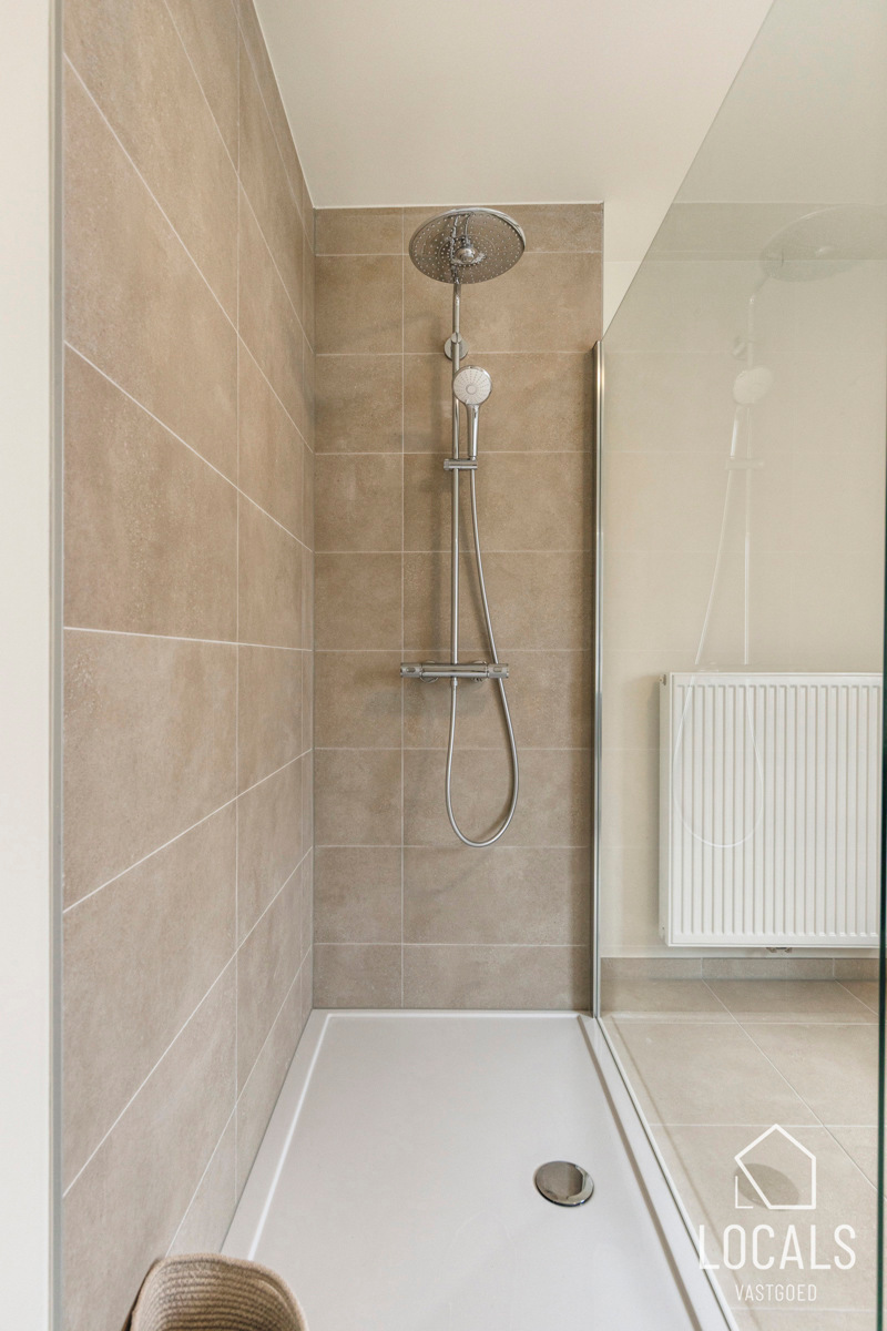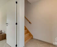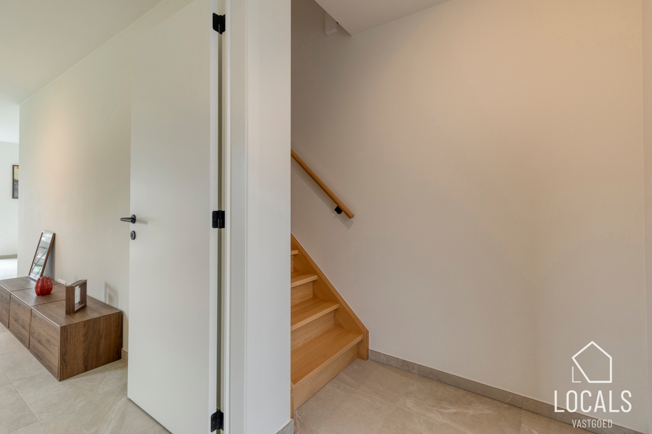 Op de verdieping bevinden zich drie ruime slaapkamers, ideaal voor gezinnen, thuiswerkers of wie graag een hobbykamer voorziet. De badkamer is logisch ingedeeld en biedt alle hedendaagse voorzieningen, terwijl een afzonderlijk toilet extra comfort garandeert. De nachthal verbindt alle ruimtes op een rustige en overzichtelijke manier.