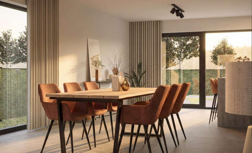 De moderne architectuur zorgt voor een open en ruimtelijk gevoel, met grote raampartijen die de leefruimte en keuken verbinden met de tuin. De woningen zijn instapklaar, toekomstgericht en hoogwaardig afgewerkt.