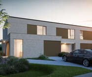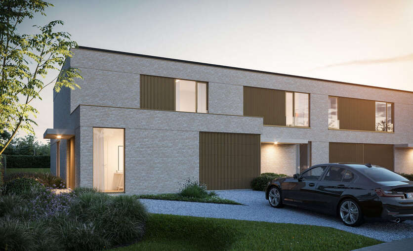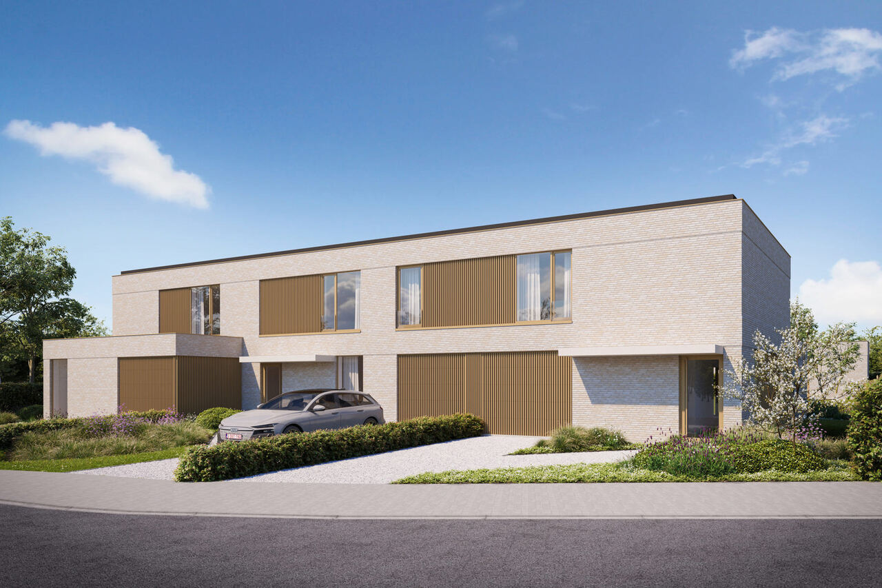- Drie stijlvolle woningen aan de straatzijde – twee halfopen en één gesloten bebouwing – telkens met twee bouwlagen, een moderne uitstraling en percelen van ca. 425 m².