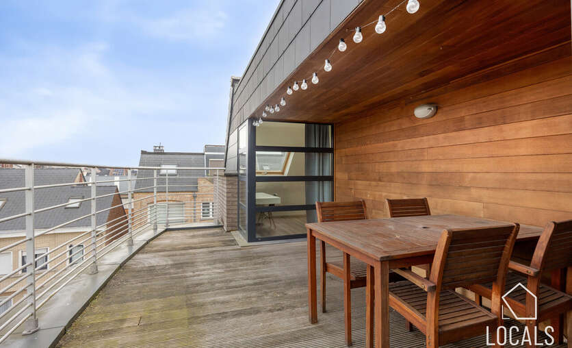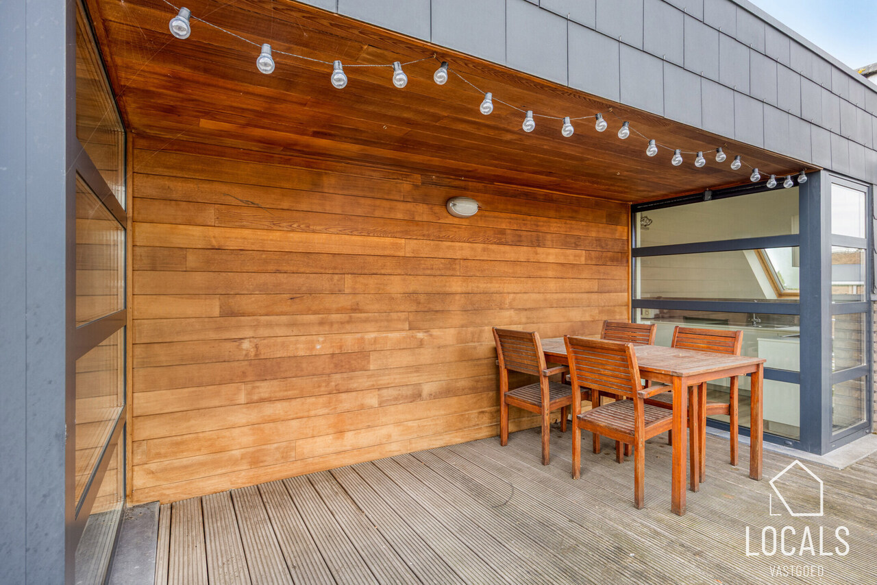 Vertoeven kan op het heerlijke terras van zo'n 19m². Hier kan je dus zowel jouw grote tafel kwijt, als een ligzetel, waarop je kan genieten in de zomer.