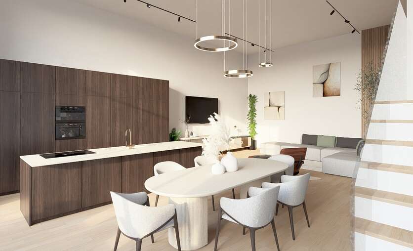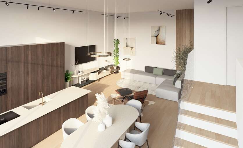 Alle entiteiten voldoen aan alle moderne normen. Als koper kiest u zelf de afwerking (keuken, badkamer, vloerbekleding, …) bij de door de bouwheer zorgvuldig geselecteerde leveranciers. Deze penthouse is een samenvoeging van 2 penthouses. Indeling kan waar mogelijk aangepast worden door de koper.