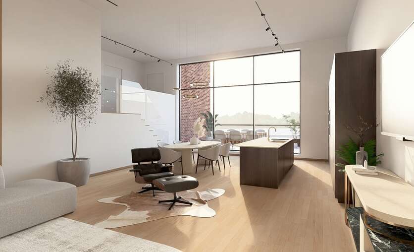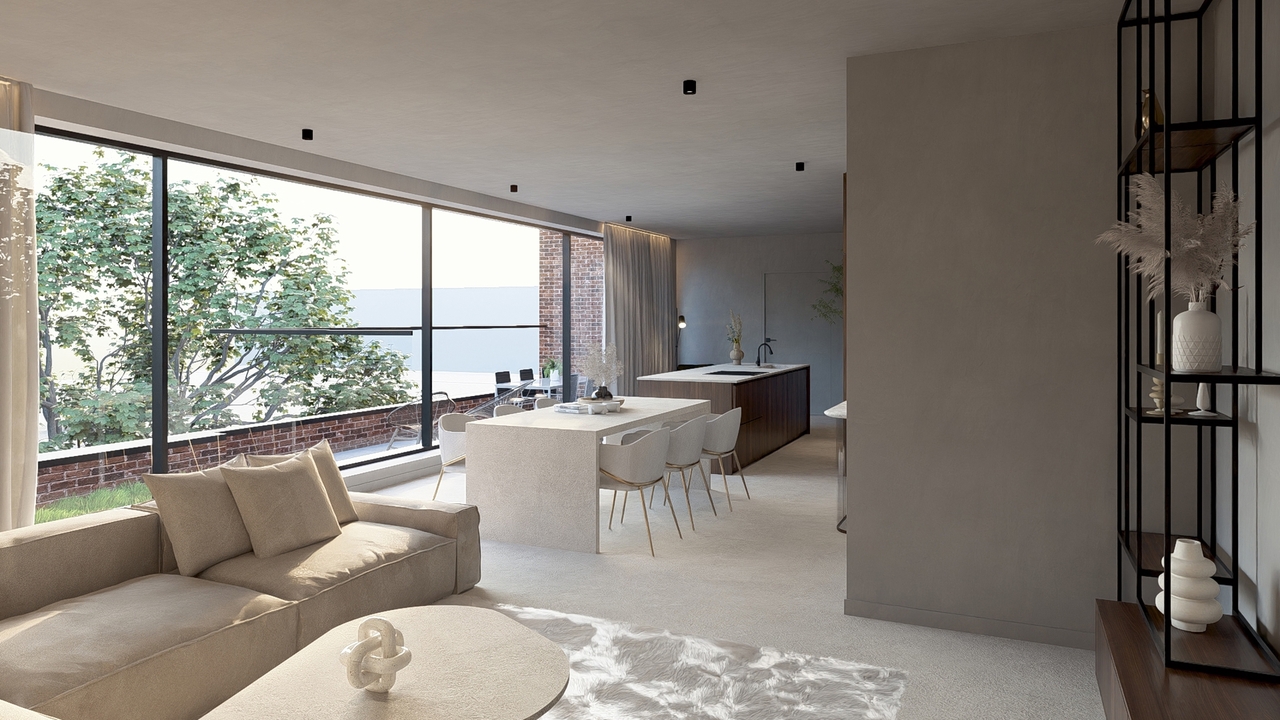Elk appartement geniet een hoge afwerkingsgraad en behoudt zijn industriële karakter dankzij de verticale raampartijen en hoge plafonds. De architect en bouwheer zorgden voor een efficiënte en hedendaagse indeling waardoor elk appartement een ruimtelijk gevoel en fijne lichtinval heeft.
