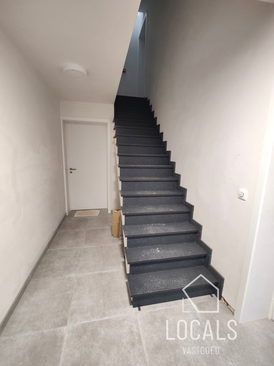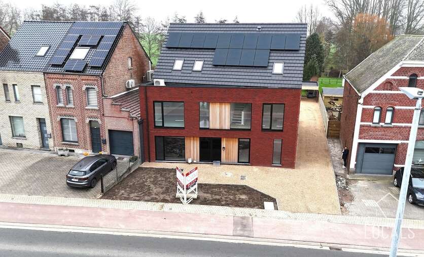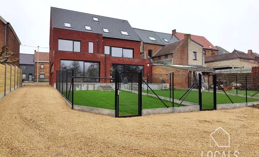 Dit kleinschalig nieuwbouwproject telt 3 ruime entiteiten (waarvan 66% verkocht). Deze triplex-woning is 190m² en is landelijk en strategisch gelegen, dit omgeven van groen en toch vlakbij het station, bushalte en makkelijke verbindingswegen. Bij het binnenkomen is er een traphal met gastentoilet, een ruime lichtrijke woonkamer met grote raampartijen en zicht op het terras en een ruime private tuin, open keuken met bijhorende berging. Op de verdieping bevindt zich een nachthal, apart toilet, badkamer met inloopdouche, 2 slaapkamers en een dressing. De zolder werd ingericht met 2 extra kamers & een 2e badkamer. U kan volgens het voorziene budget de keuken kiezen naar eigen smaak. Er is vloerverwarming op basis van lucht/waterwarmtepomp, gemeenschappelijke regenwaterput, ventilatiesysteem C+, zonnepanelen, aluminium met hoogrendementsbeglazing, .. kortom, een volledig instapklaar en kwalitatieve woonst zal worden afgeleverd. Verplicht dubbele carport aan te kopen. Er is mogelijkheid om achtergelegen grond bij aan te kopen. Prijzen excl. nutsvoorzieningen, BTW, verkooprechten en ereloon notaris. Voor meer informatie, plannen en lastenboek: 054 23 53 83 of info@localsvastgoed.be